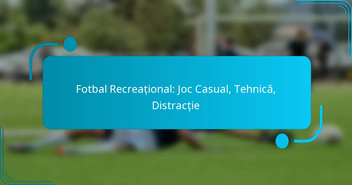 Fotbalul recreațional se concentrează pe bucuria jocului într-un mediu relaxat, unde accentul este pus pe distracție și interacțiune socială, mai degrabă decât pe competiție. Jucătorii își pot îmbunătăți abilitățile prin practică în șuturi, pase și dribling, ceea ce duce la o experiență mai plăcută pe teren. Această abordare casuală nu doar că promovează fitnessul fizic și coordonarea, dar întărește și prieteniile, construind un sentiment de comunitate între participanți.