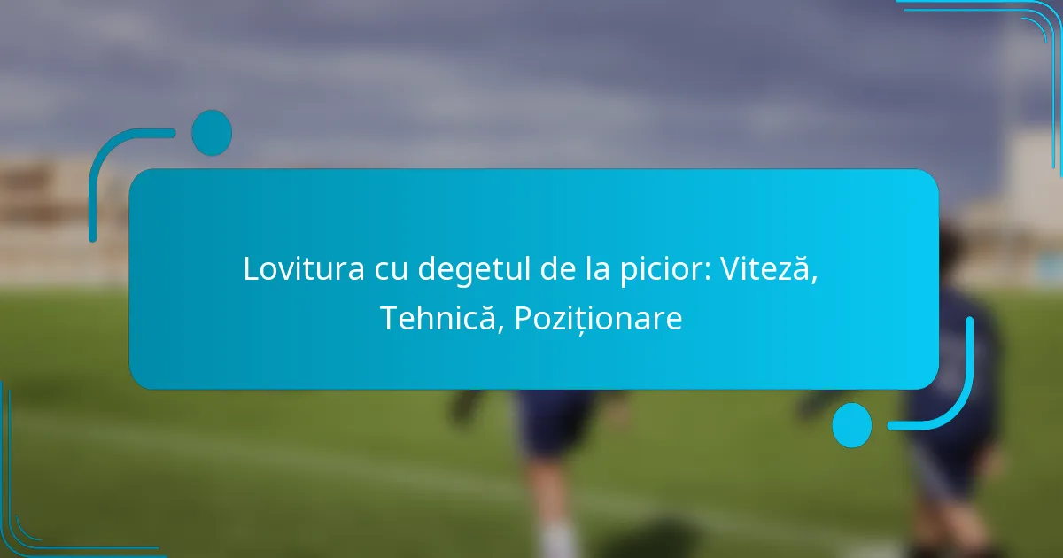 Șutul cu degetul mare este o tehnică unică în fotbal care implică lovirea mingii cu degetul mare al ghetei, rezultând un șut rapid și adesea imprevizibil pe poartă. Această metodă este deosebit de utilă în situații strânse, permițând jucătorilor să execute șuturi rapide care pot surprinde portarii. Stăpânirea șutului cu degetul mare necesită atenție la poziționarea piciorului, la poziția corpului și la echilibrul corect între viteză și putere, în timp ce plasarea eficientă vizează zone specifice ale porții pentru a maximiza șansele de a marca.